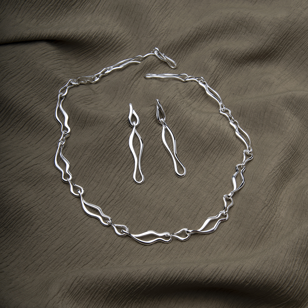 Inspired by footprints trailing along the shoreline, the Step Lightly Necklace features sculptural sterling silver elements flowing naturally from one to the next. Refined, balanced and contemporary, it’s a meaningful design shaped with intention.